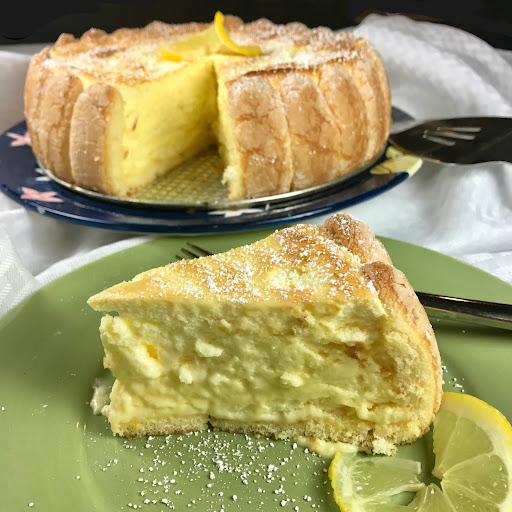 It uses lemon, confectioners sugar, lady fingers, cream cheese, butter, whipped cream.